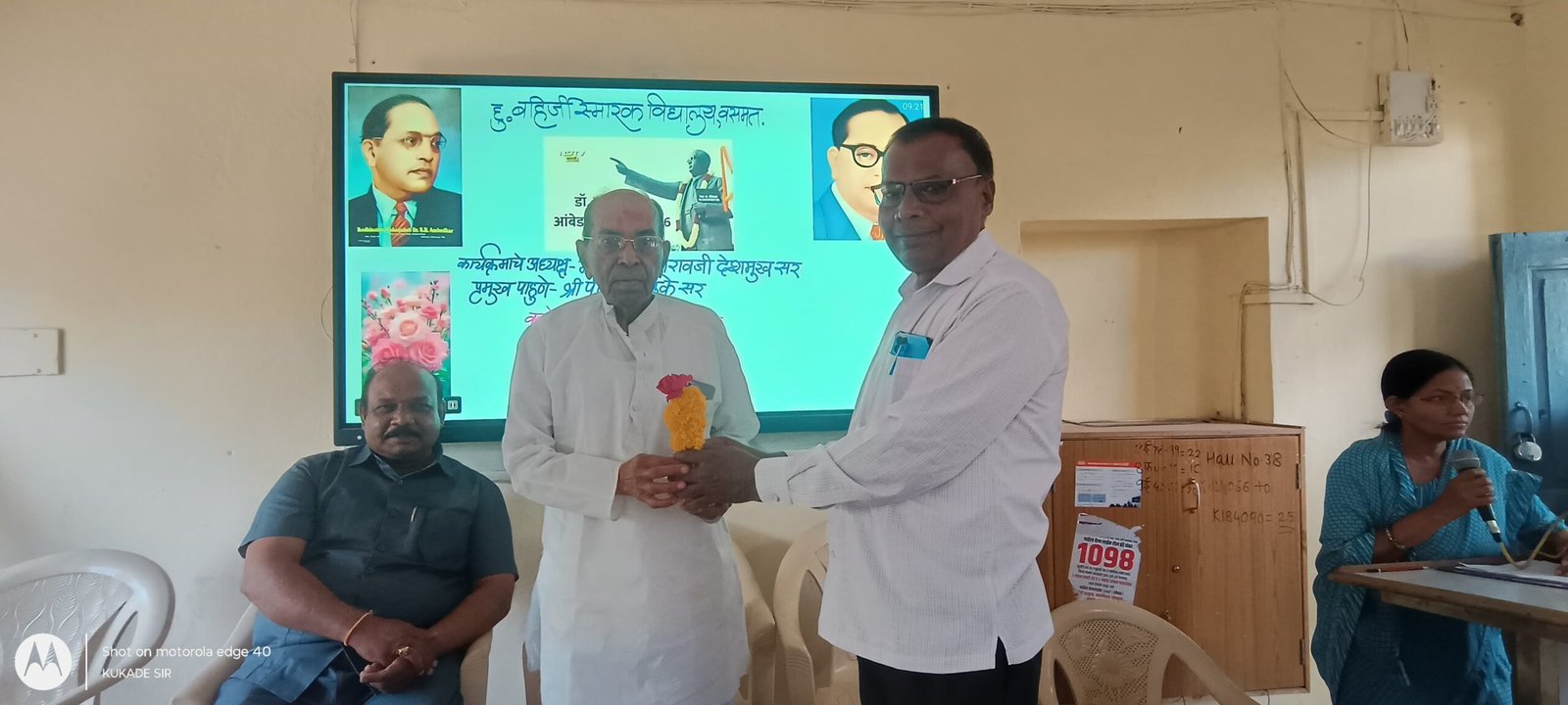 दि.१४ एप्रिल रोजी वसमत येथील नामांकित असलेल्या हुतात्मा बहिर्जी स्मारक विद्यालयात महामानव,भारतरत्न डॉ.बाबासाहेब आंबेडकर यांची जयंती मोठ्या उत्साहात साजरी करून त्यांच्या विचाराला आणि कार्याला अभिवादन करण्यात आले.या कार्यक्रमाचे अध्यक्ष हुतात्मा बहिर्जी स्मारक शिक्षण संस्थेचे सन्माननीय सचिव पंडितराव देशमुख सर होते,तसेच प्रमुख पाहुणे म्हणून विद्यालयाचे मुख्याध्यापक आदरणीय श्री.पी.जी.शेळके सर,पर्यवेक्षिका श्रीमती एस.व्ही.जाधव मॅडम,पर्यवेक्षक श्री.डी.आर बागल सर,पर्यवेक्षक श्री.के.बी.वायचाळ सर,तसेच प्रमुख वक्ते म्हणून विद्यालयाचे गणित विभाग प्रमुख श्री.बी.व्ही.कल्याणकर सर,तसेच इंग्रजी विभाग प्रमुख श्री एस.व्ही.पोटे सर यांच्या प्रमुख उपस्थितीत हा कार्यक्रम संपन्न झाला.सर्वप्रथम मान्यवरांनी डॉ.बाबासाहेब आंबेडकर यांच्या प्रतिमेचे पूजन करून त्यांच्या विचाराला आणि कार्याला अभिवादन केले. व्यासपीठावर उपस्थित असलेले कार्यक्रमाचे अध्यक्ष आदरणीय पंडितराव देशमुख सर,मुख्याध्यापक श्री पी.जी.शेळके सर,तसेच प्रमुख वक्ते श्री बी.व्ही.कल्याणकर सर,श्री.एस.व्ही.पोटे सर या सर्वांनी डॉ.बाबासाहेब आंबेडकर यांच्या कार्याचा गौरव करत सांगितले की,डॉ.बाबासाहेब आंबेडकर यांनी आयुष्यभर अस्पृश्यता निवारण,दलित हक्क,महीला सक्षमीकरण तसेच कामगार कल्याणासाठी आयुष्यभर लढा दिला.डॉ.बाबासाहेब आंबेडकरांनी स्त्रीयांच्या शिक्षणाचा आणि मालमत्तेच्या हक्काचा पुरस्कार केला.असे विचार व्यक्त करून महामानव भारतरत्न डॉ.बाबासाहेब आंबेडकर यांच्या कार्याचा गौरव केला.या भीमजयंतीच्या निमित्ताने क्रिडाशिक्षक डी.एन.पाईकराव सरांनी एक सुंदर गीत सादर केले.या कार्यक्रमाचे संचलन संयोजिका श्रीमती ए.के.नादरे मॅडम यांनी केले.तसेच या कार्यक्रमाचे आभार श्रीमती एम.आर.वायचाळ मॅडम यांनी केले.या